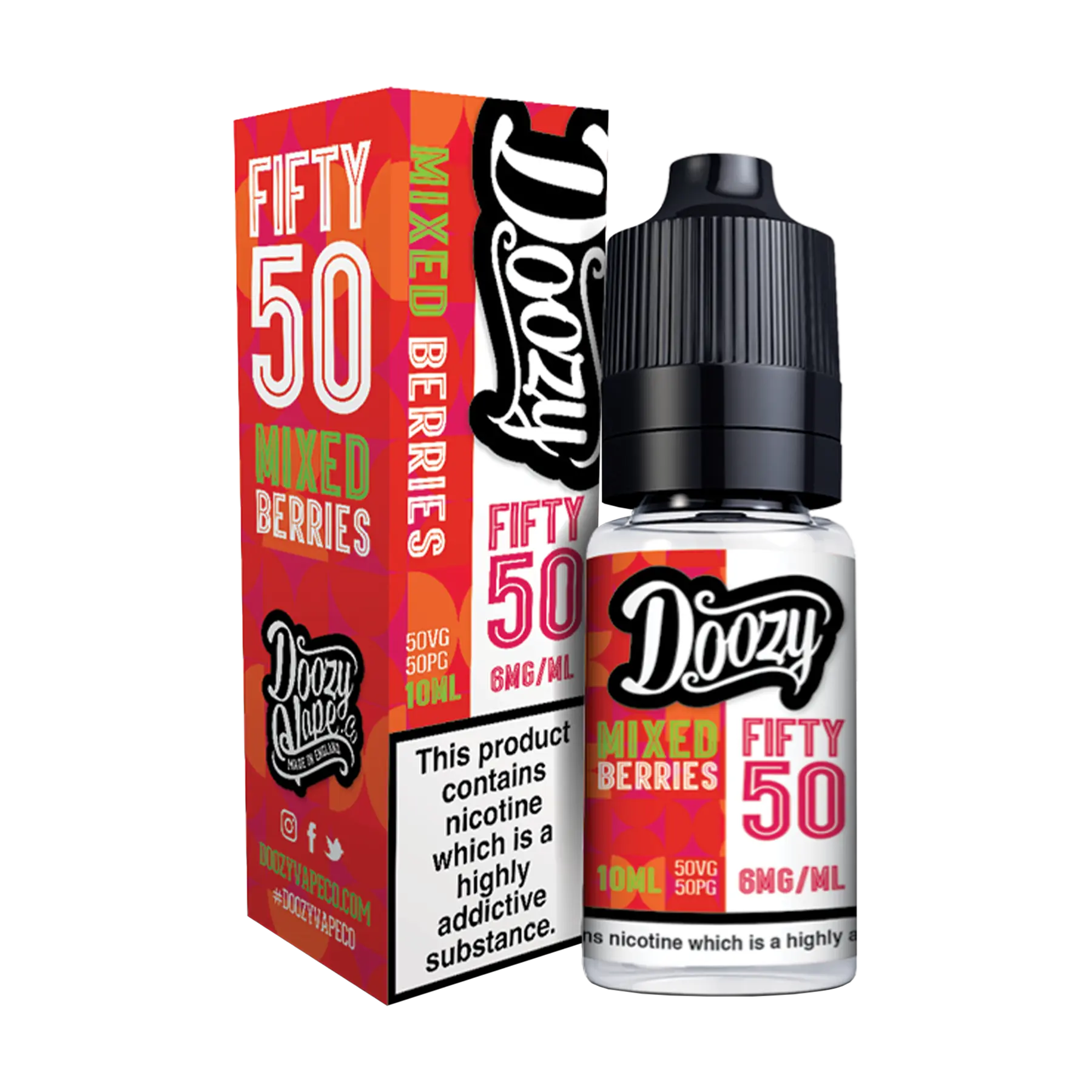 Doozy Vape Co’s 50/50 collection is produced in UK laboratories and blended to a balanced 50% PG and 50% VG ratio. This mix is designed to deliver strong flavour with a discreet vapour output, making it a reliable option for everyday MTL vaping. Available in 10ml bottles, the range comes in 3mg, 6mg, 12mg, and 18mg nicotine strengths, with flavours including menthol, mixed berries, tobacco, and more.